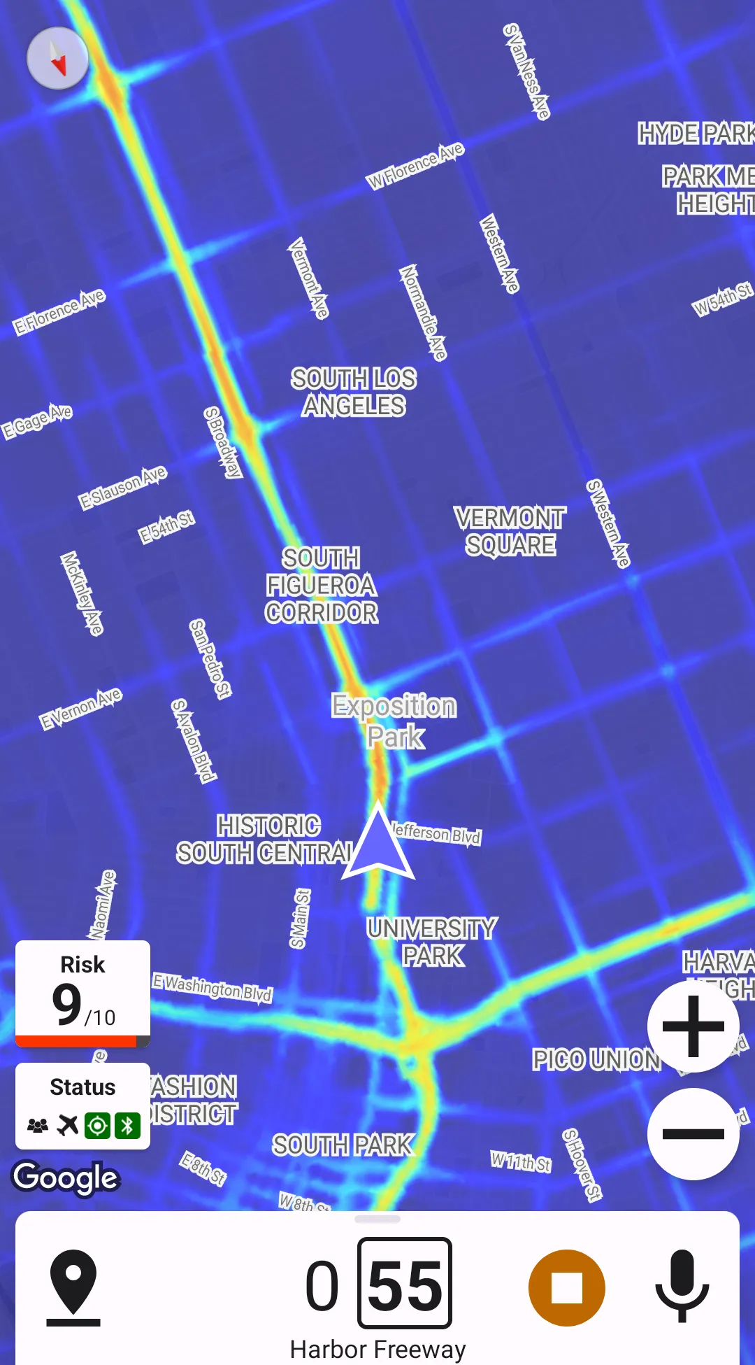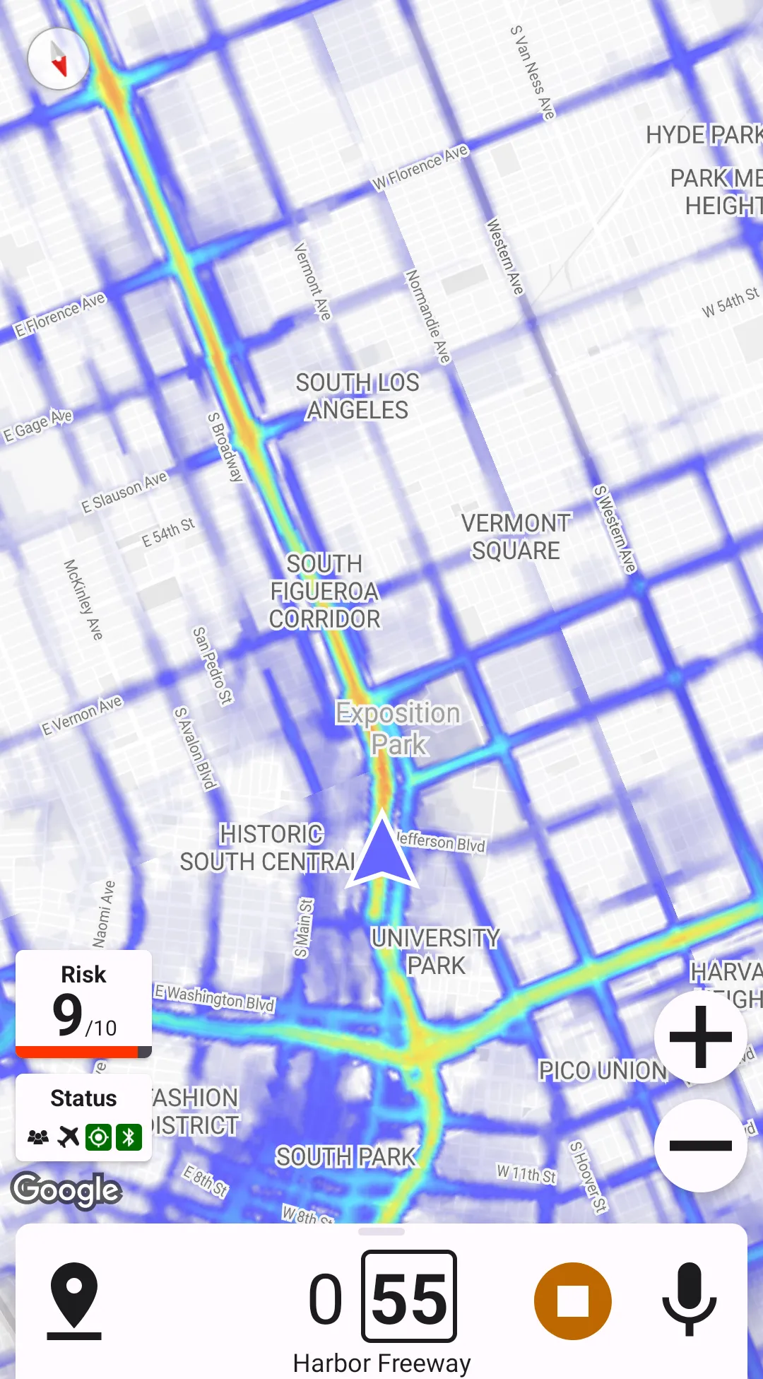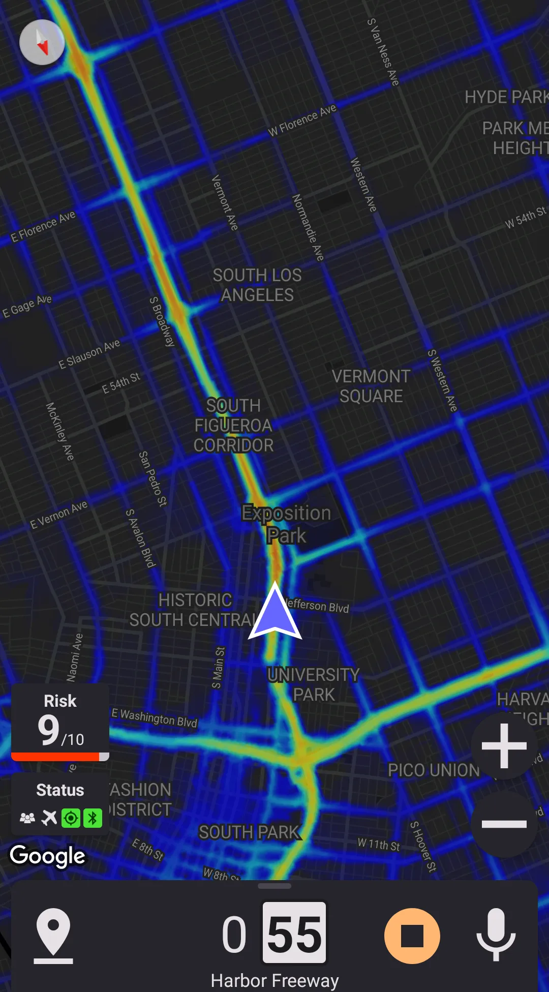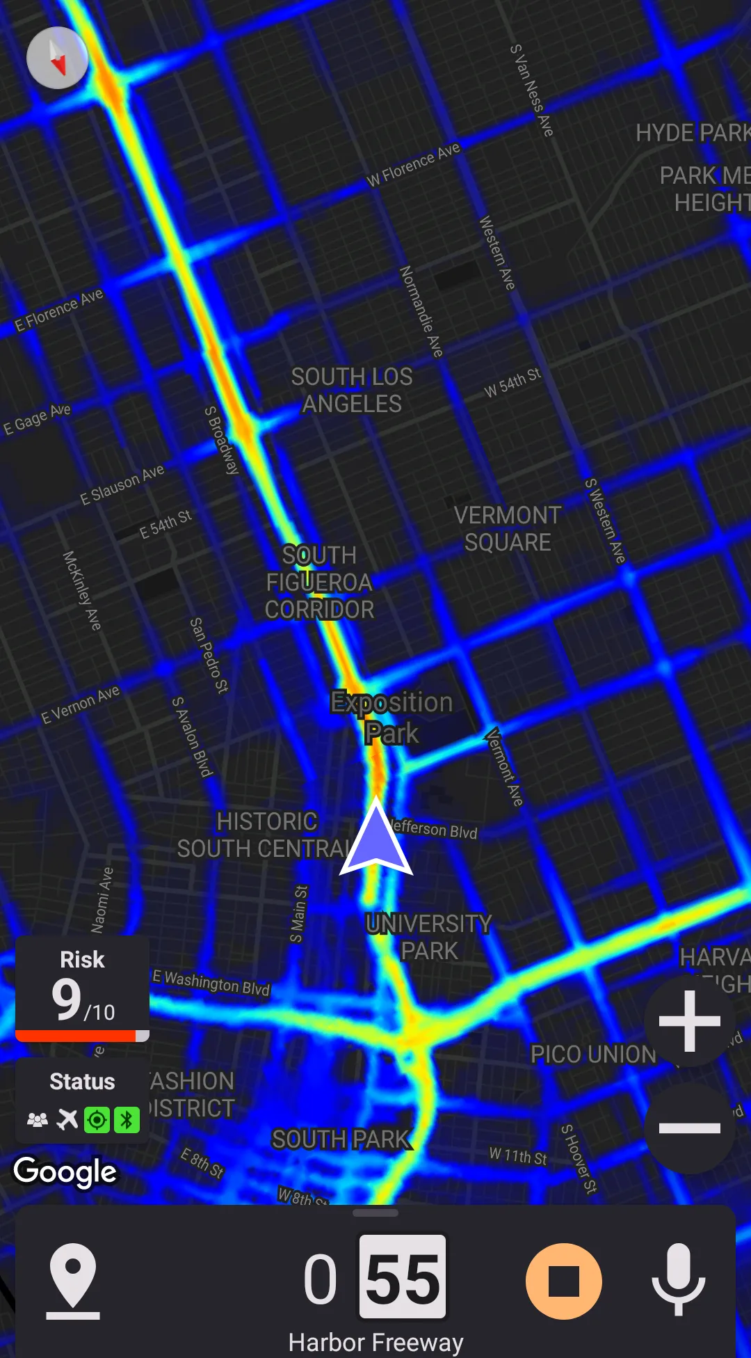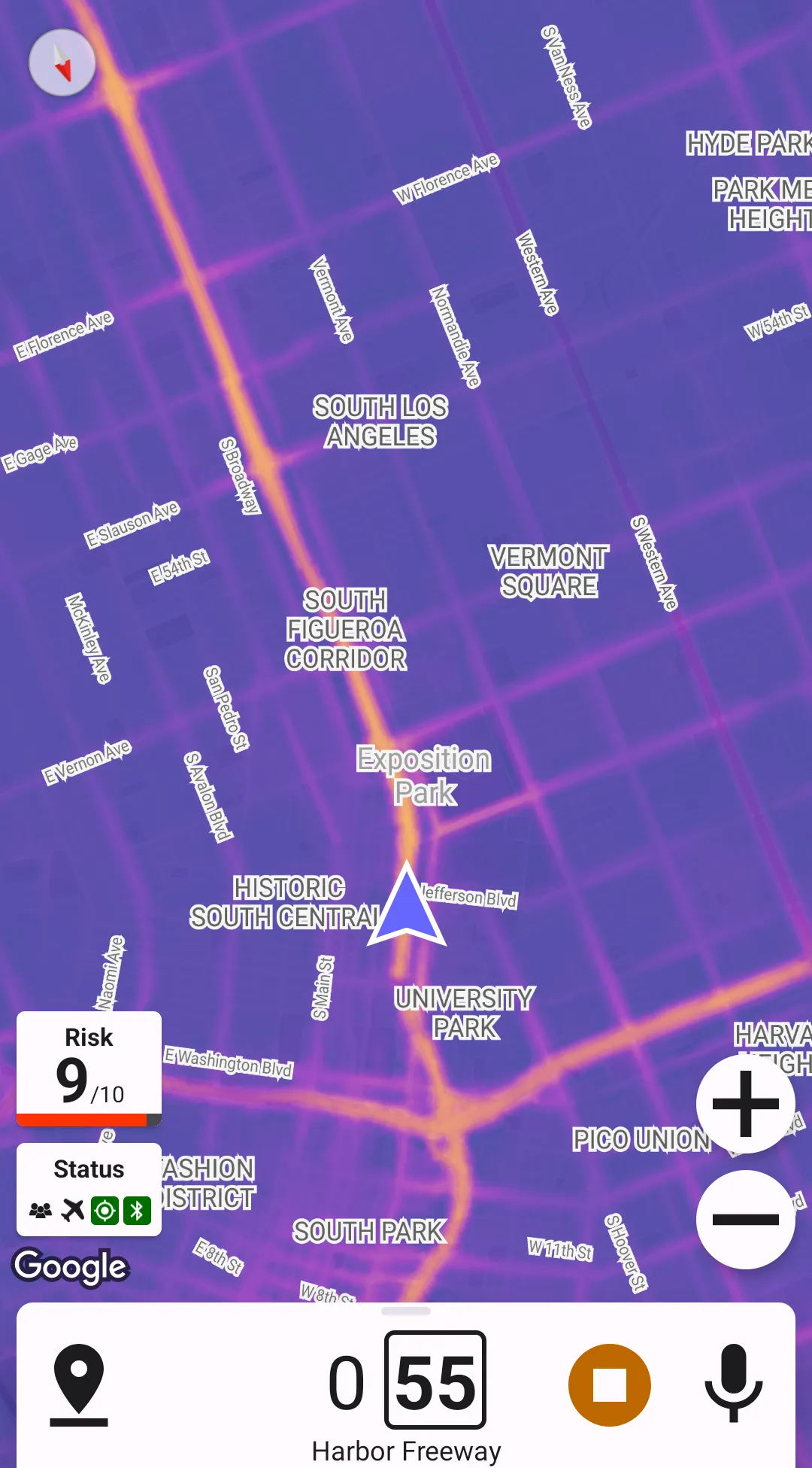 Heat maps are normalized to the area around. Normalization means that if there are many police reports in some area in general (say, in Manhattan) – the entire area is painted colder to allow still seeing more frequent locations of police reports. It also means that a "red" spot in a rural area has an entirely different meaning than a "red" spot in a downtown megalopolis. Normalization helps demonstrate where police are seen often; however, it doesn't help with showing how often police are seen there. To know how often is police seen in the area, check out the Risk Estimation section.