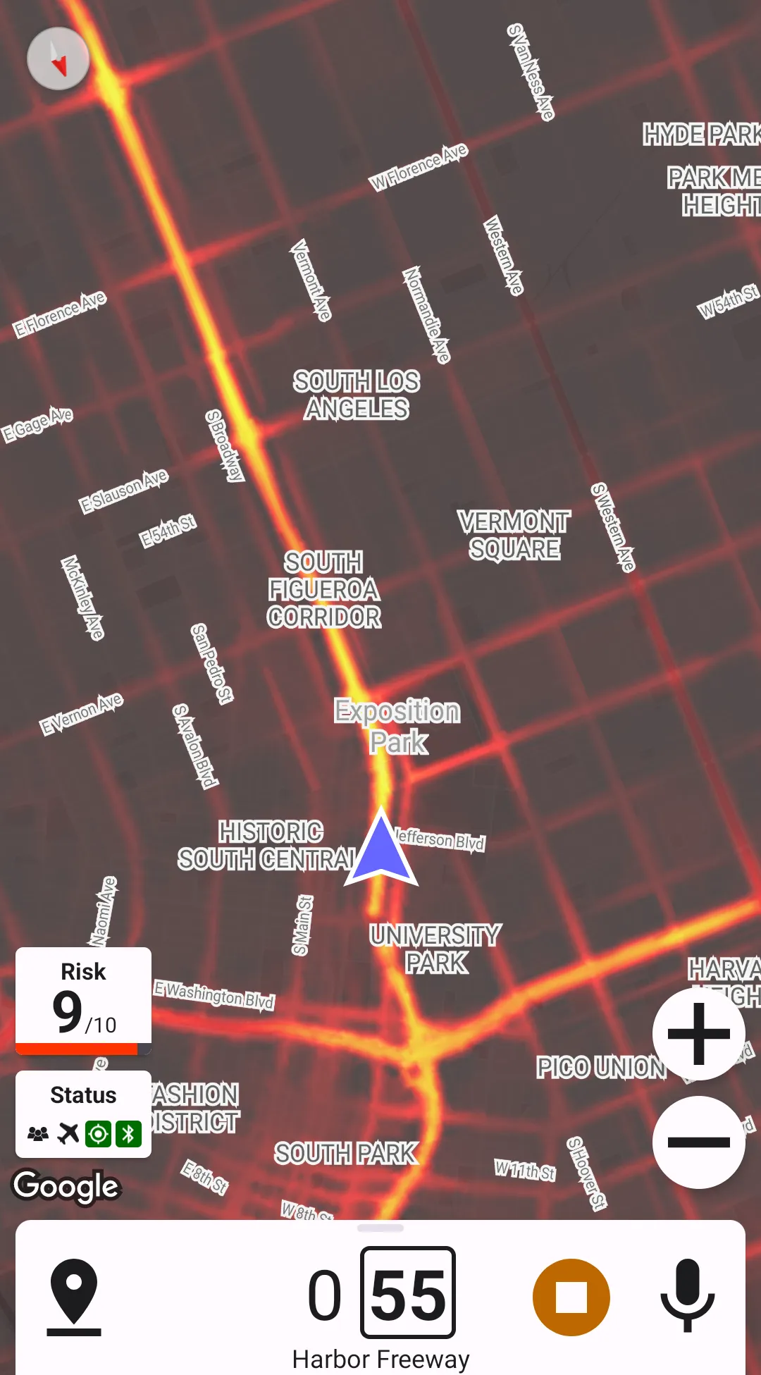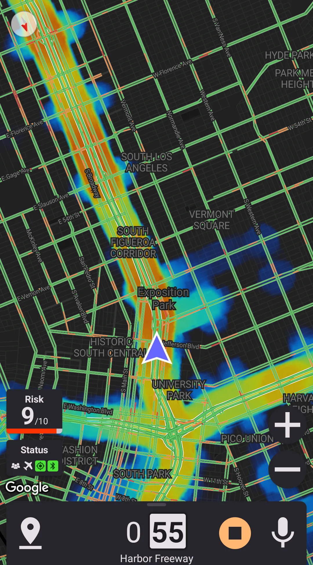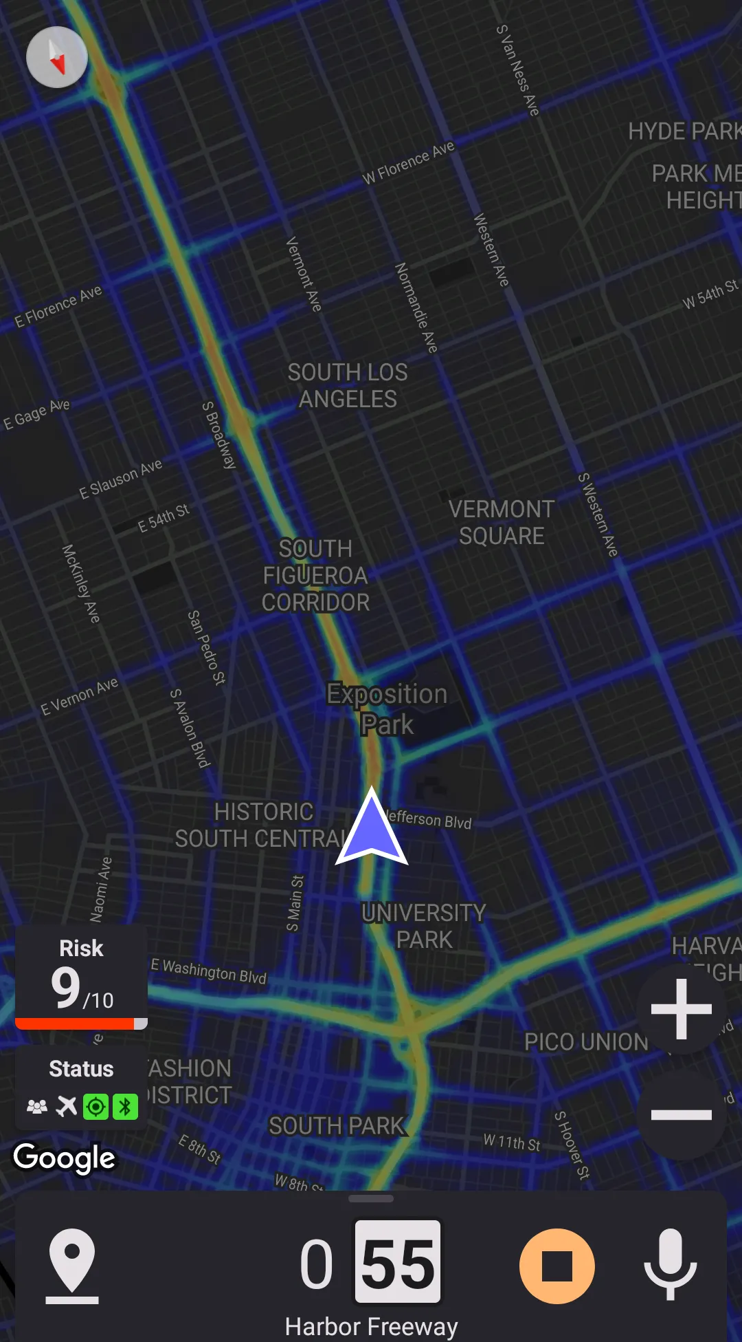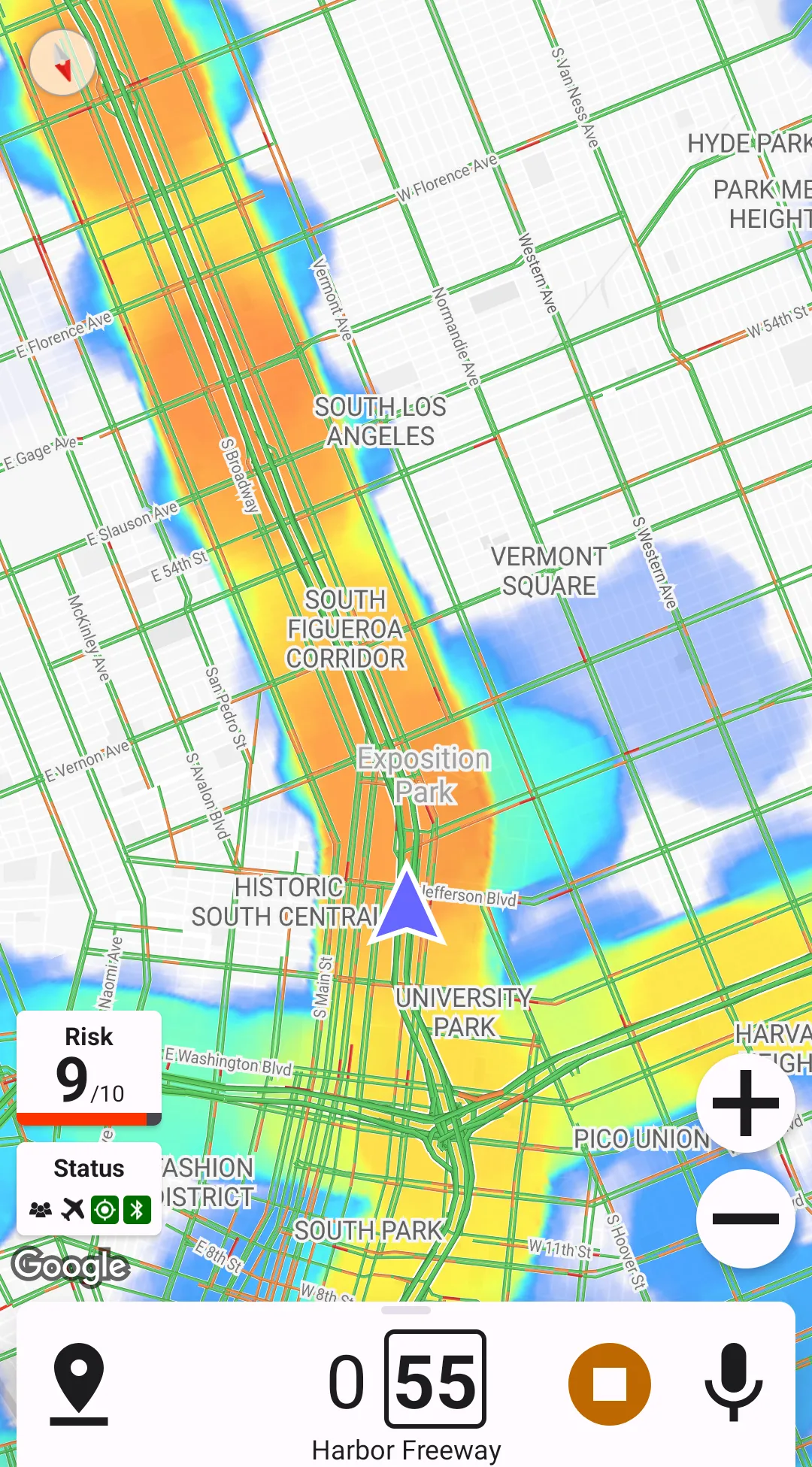Heat maps are normalized to the area around. Normalization means that if there are many police reports in some area in general (say, in Manhattan) – the entire area is painted colder to allow still seeing more frequent locations of police reports. It also means that a "red" spot in a rural area has an entirely different meaning than a "red" spot in a downtown megalopolis. Normalization helps demonstrate where police are seen often; however, it doesn't help with showing how often police are seen there. To know how often is police seen in the area, check out the Risk Estimation section.