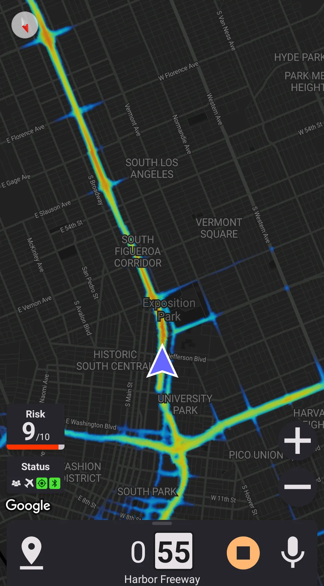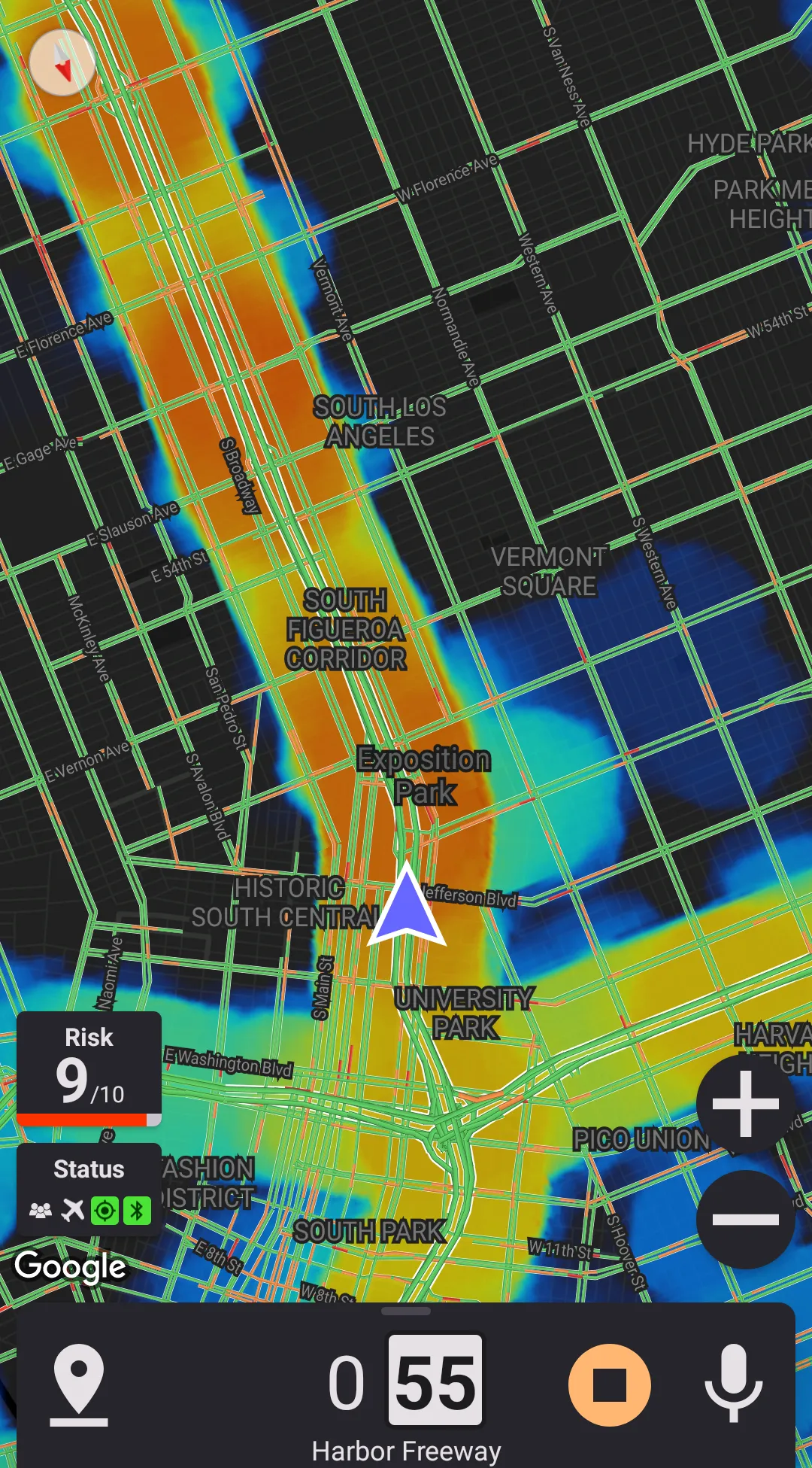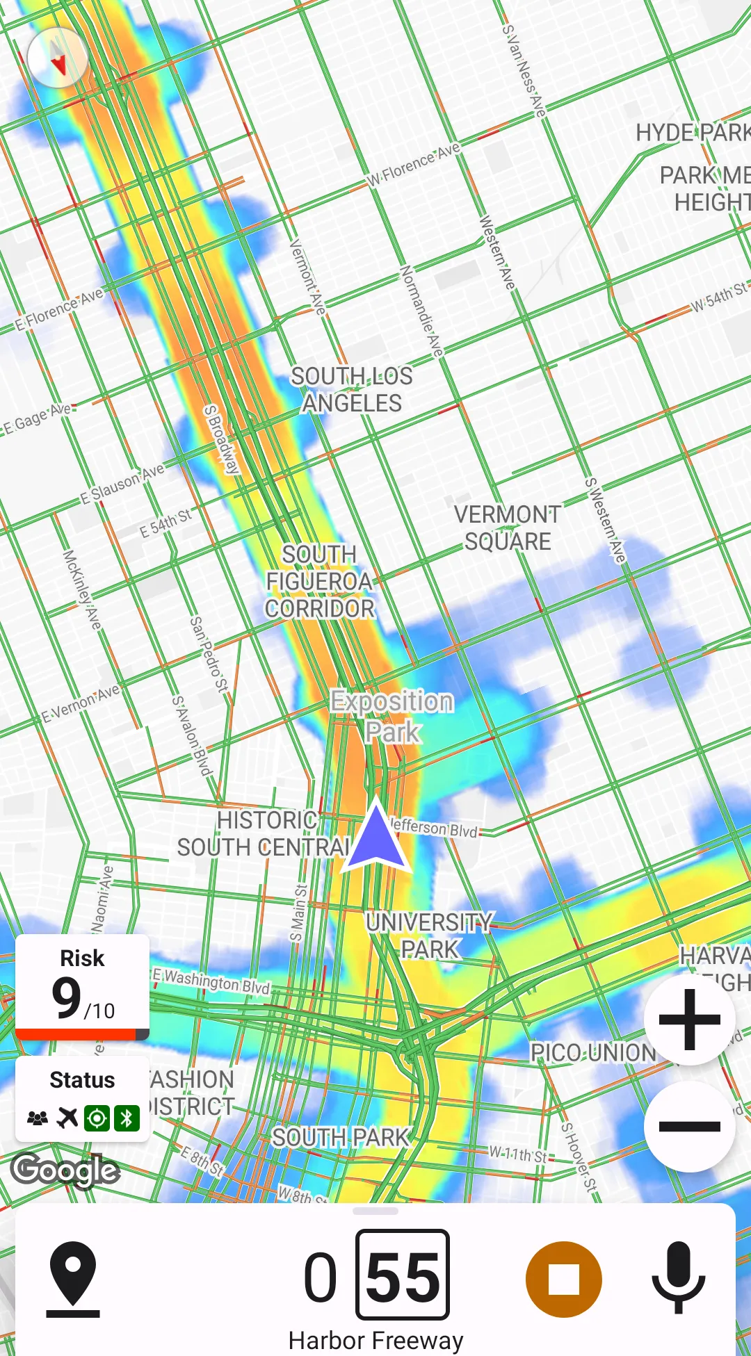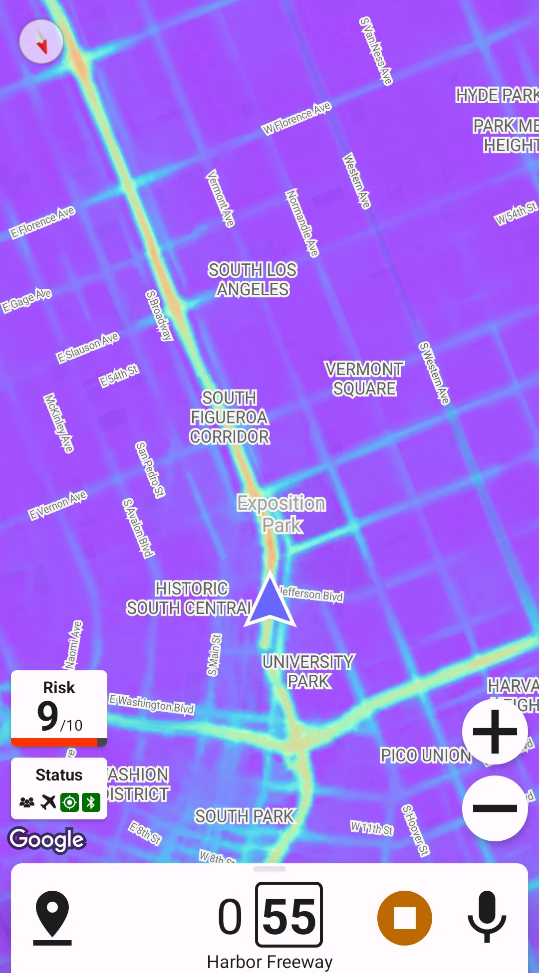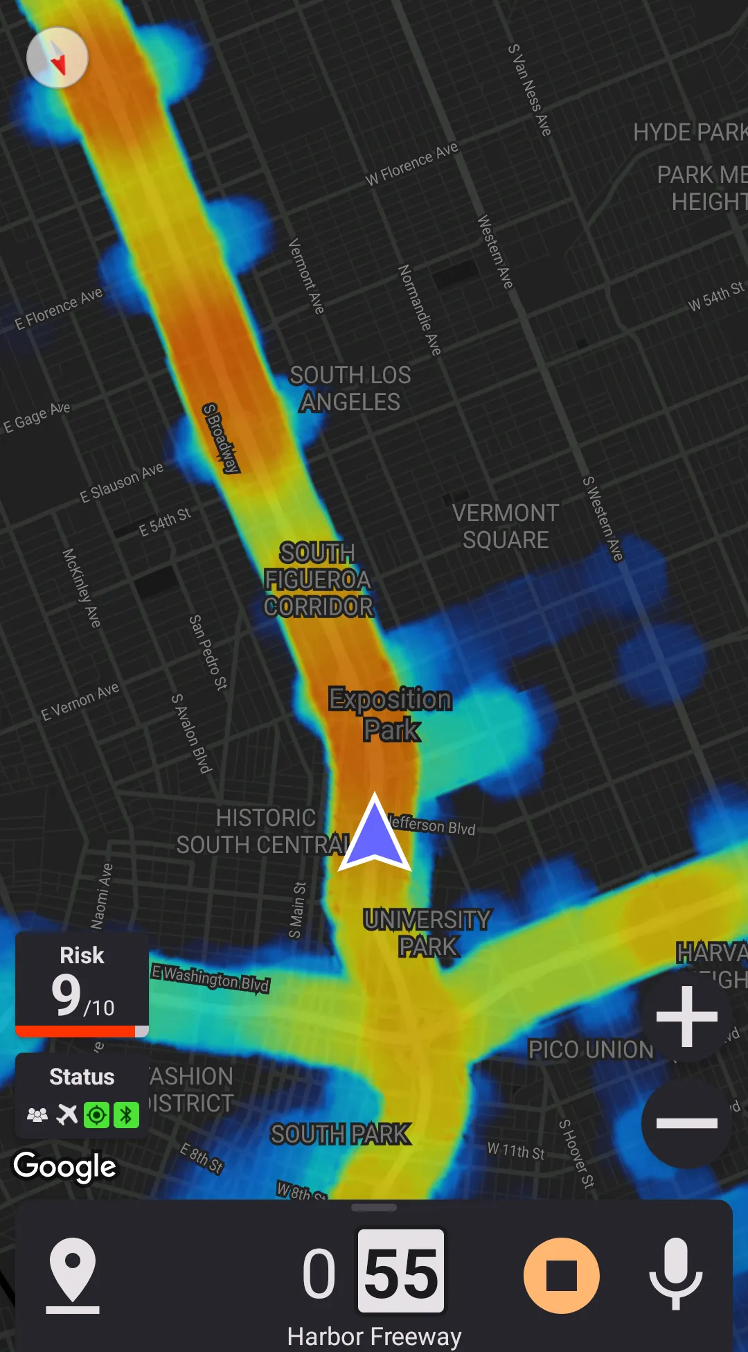 Heat maps are normalized to the area around. Normalization means that if there are many police reports in some area in general (say, in Manhattan) – the entire area is painted colder to allow still seeing more frequent locations of police reports. It also means that a "red" spot in a rural area has an entirely different meaning than a "red" spot in a downtown megalopolis. Normalization helps demonstrate where police are seen often; however, it doesn't help with showing how often police are seen there. To know how often is police seen in the area, check out the Risk Estimation section.