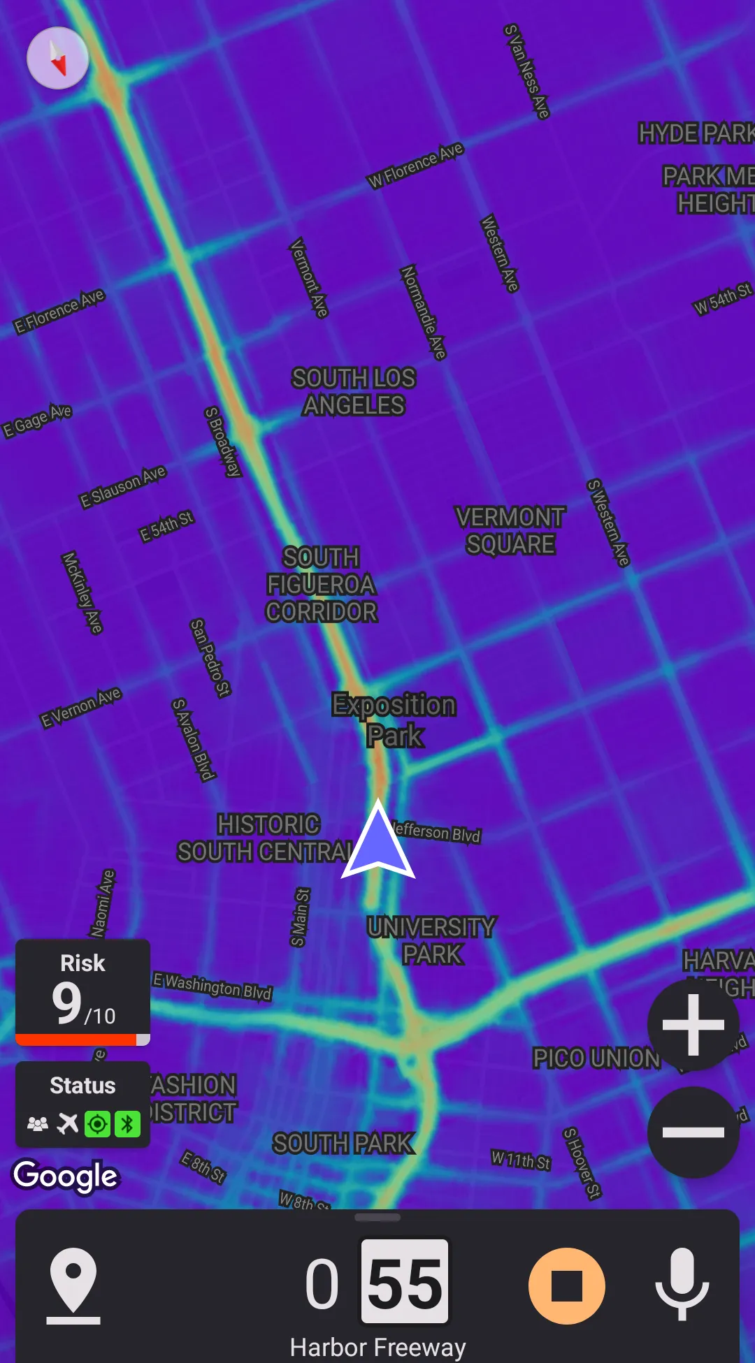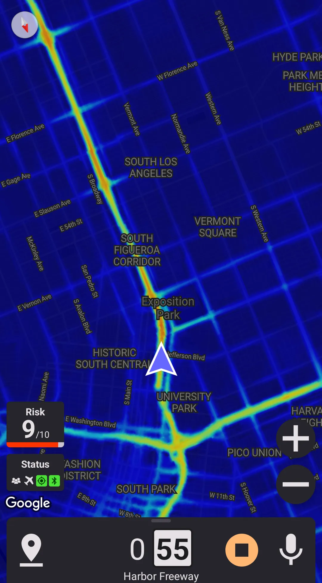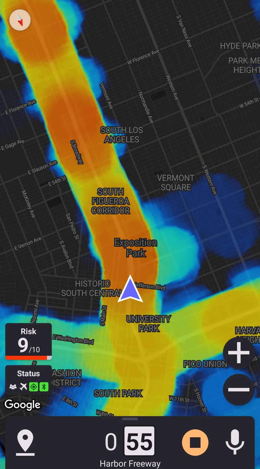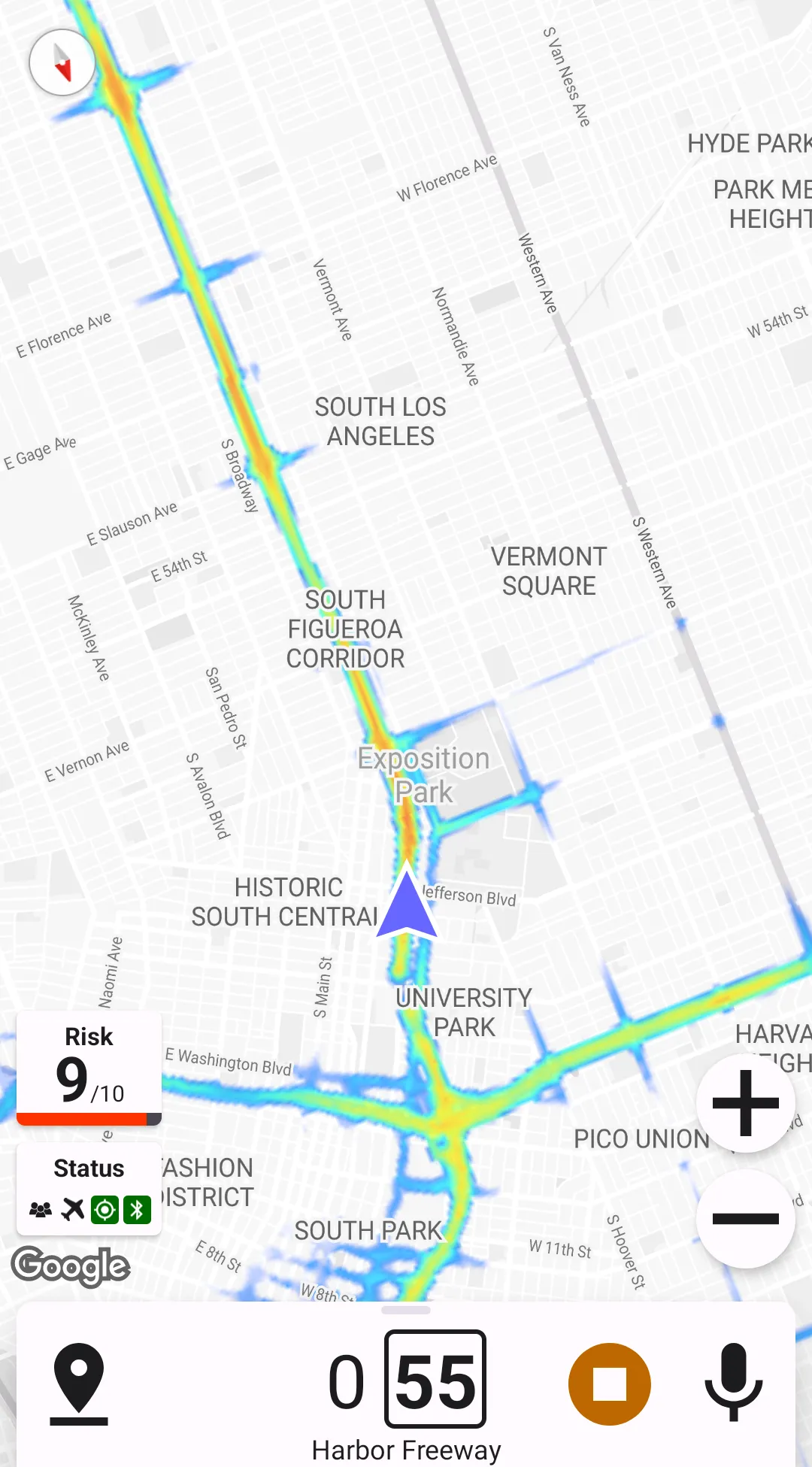 Heat maps are normalized to the area around. Normalization means that if there are many police reports in some area in general (say, in Manhattan) – the entire area is painted colder to allow still seeing more frequent locations of police reports. It also means that a "red" spot in a rural area has an entirely different meaning than a "red" spot in a downtown megalopolis. Normalization helps demonstrate where police are seen often; however, it doesn't help with showing how often police are seen there. To know how often is police seen in the area, check out the Risk Estimation section.