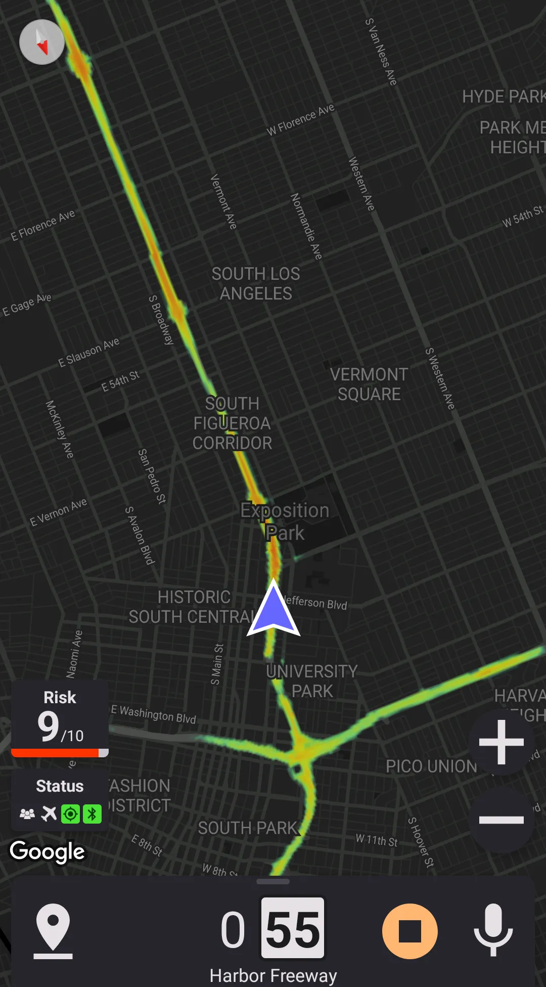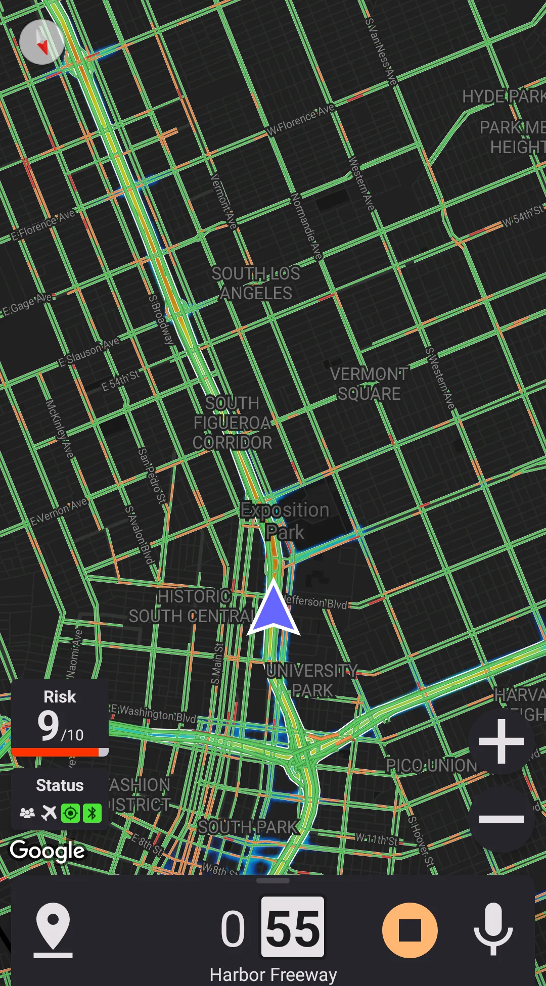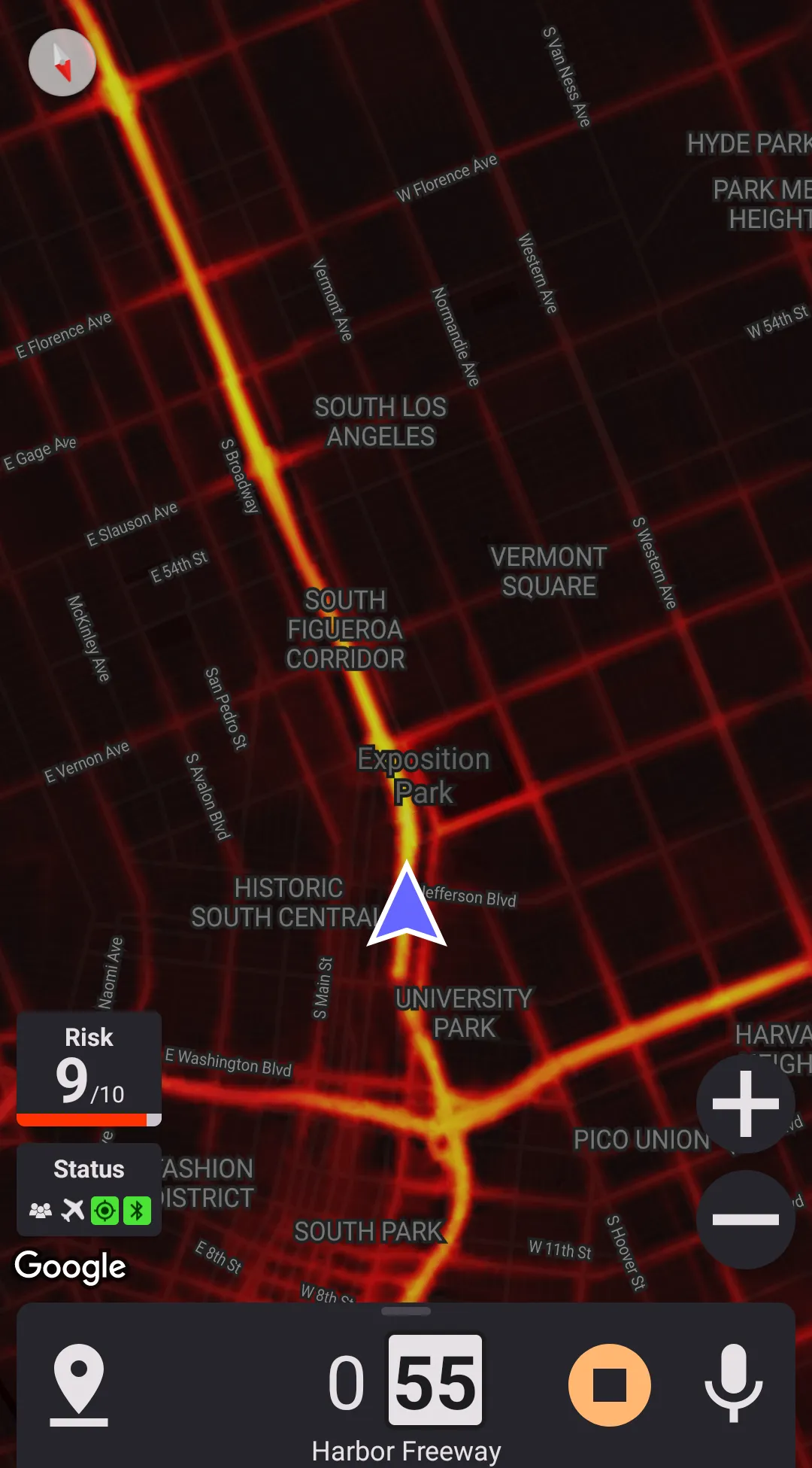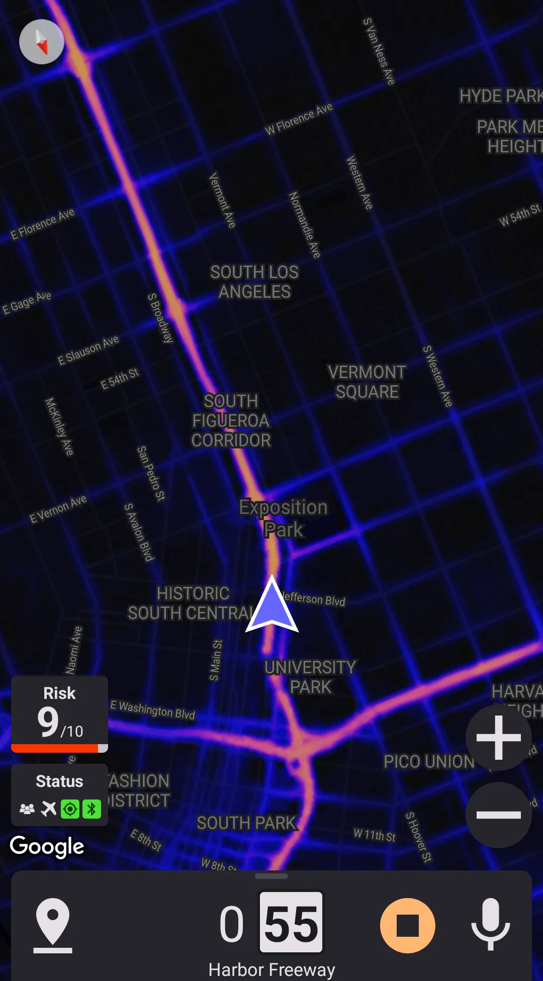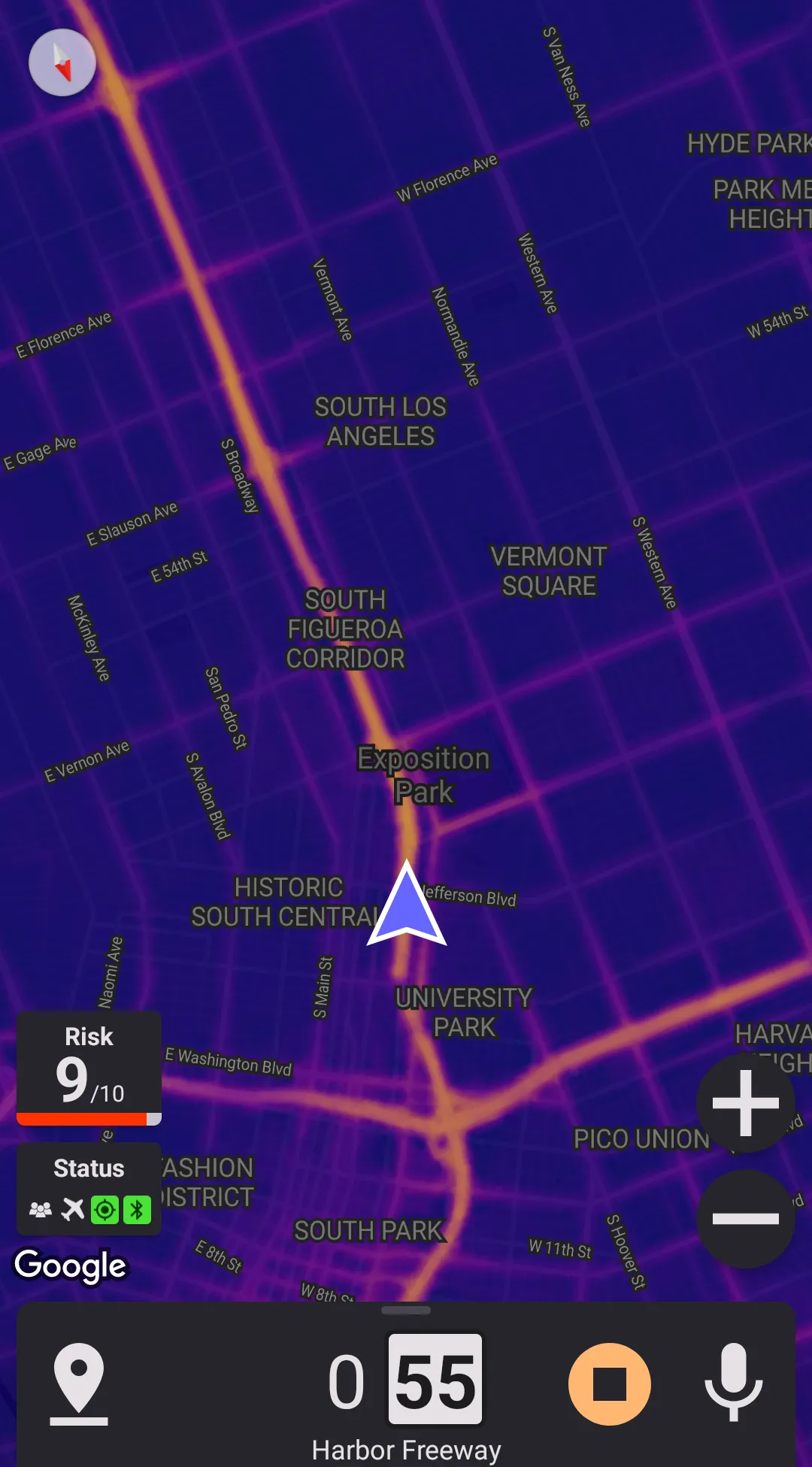 Heat maps are normalized to the area around. Normalization means that if there are many police reports in some area in general (say, in Manhattan) – the entire area is painted colder to allow still seeing more frequent locations of police reports. It also means that a "red" spot in a rural area has an entirely different meaning than a "red" spot in a downtown megalopolis. Normalization helps demonstrate where police are seen often; however, it doesn't help with showing how often police are seen there. To know how often is police seen in the area, check out the Risk Estimation section.