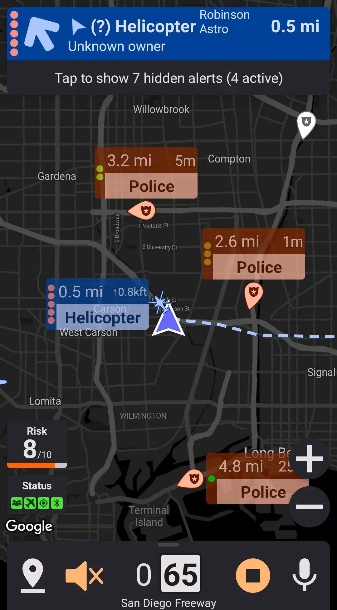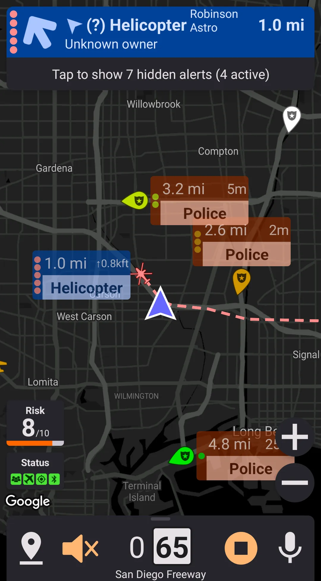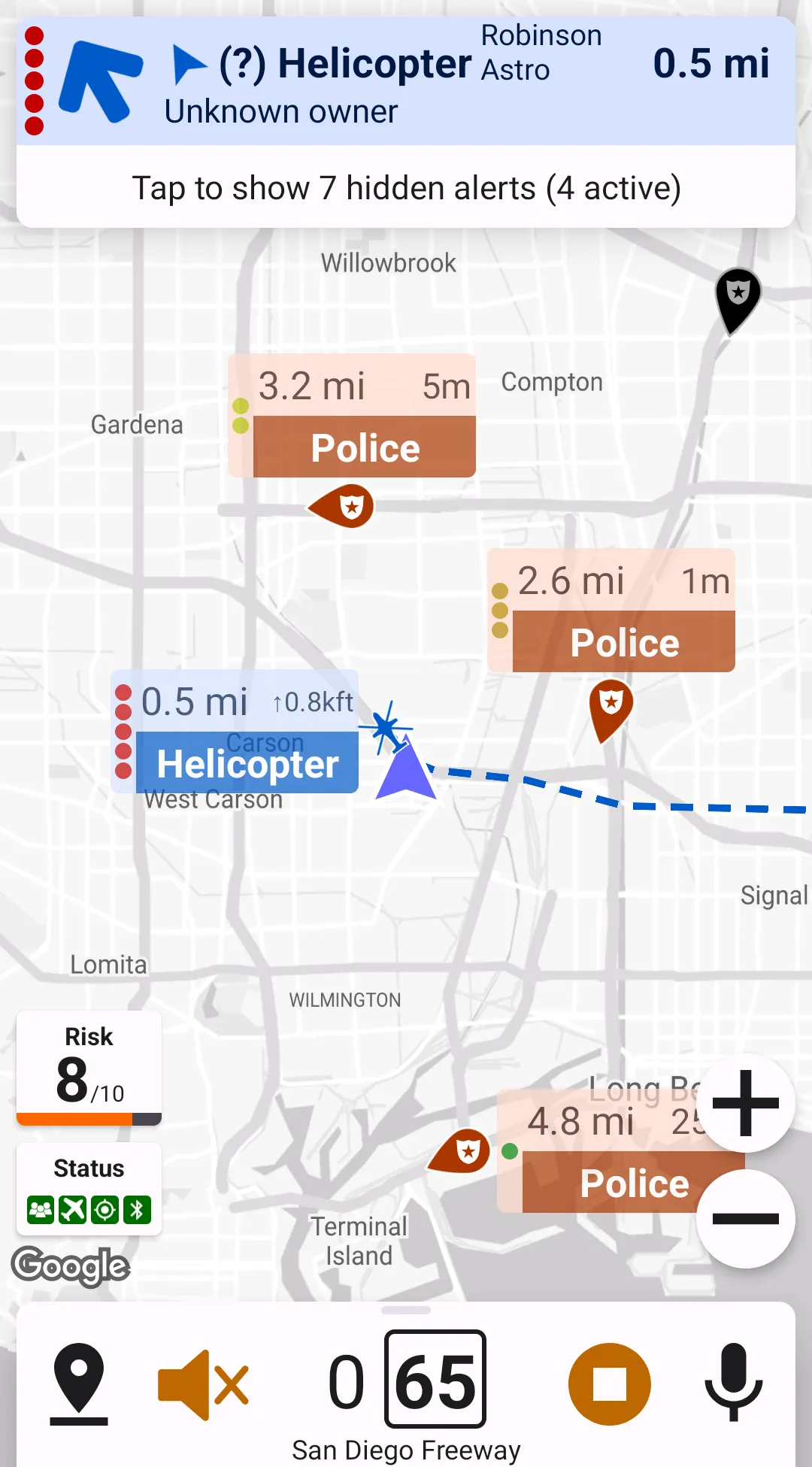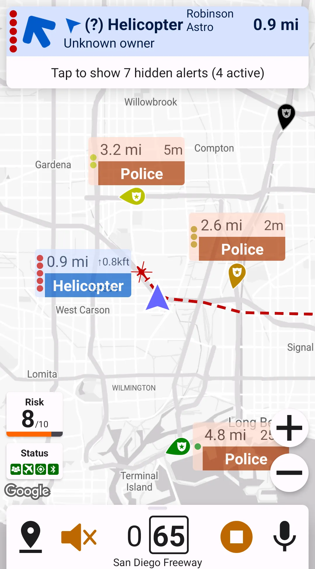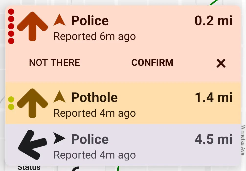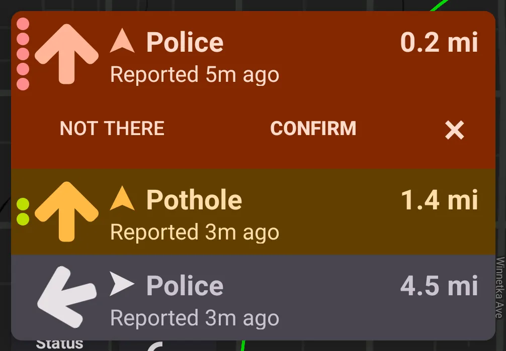 Map markers are available for geo-referenced alerts, such as crowdsourced reports, aircraft, cameras, etc. Map markers aren't available for radar/laser alerts.